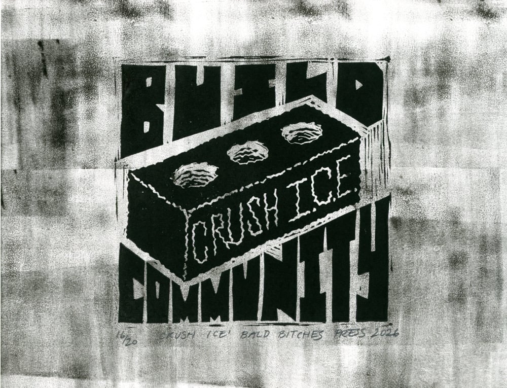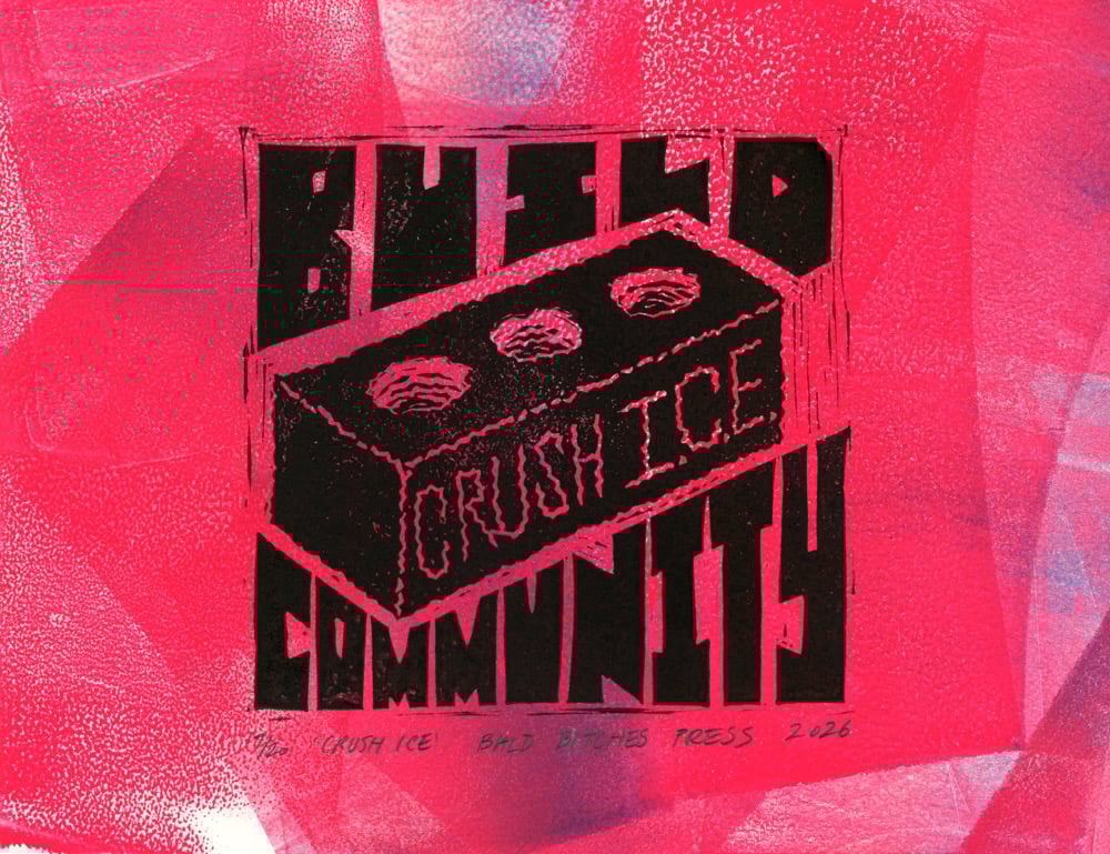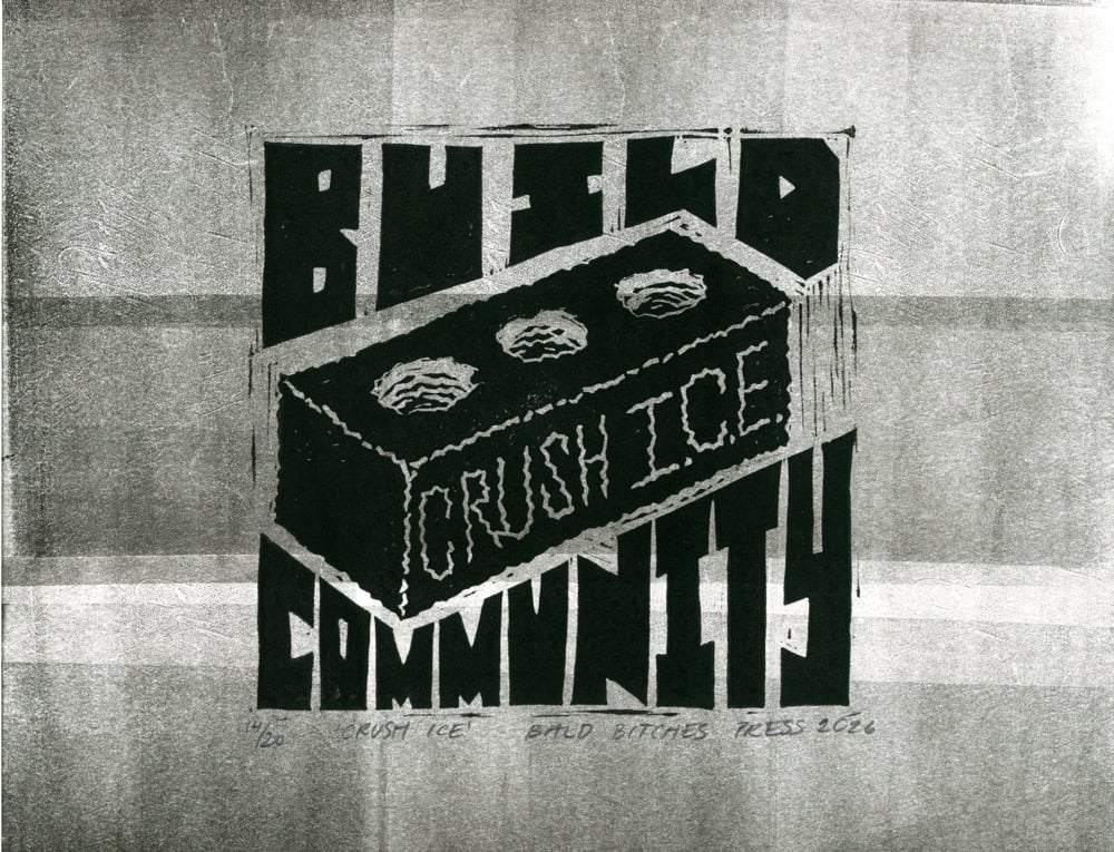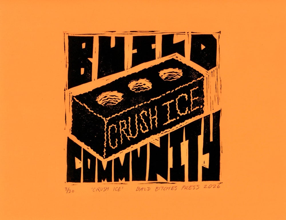 Linocut block print on 8.5" x 11" color and inked paper. 50% of proceeds donated to vendor buyout programs to assist families affected by ICE in the LA metroplex via @pasadenaforall @southbayforall and @immdef_lawcenter